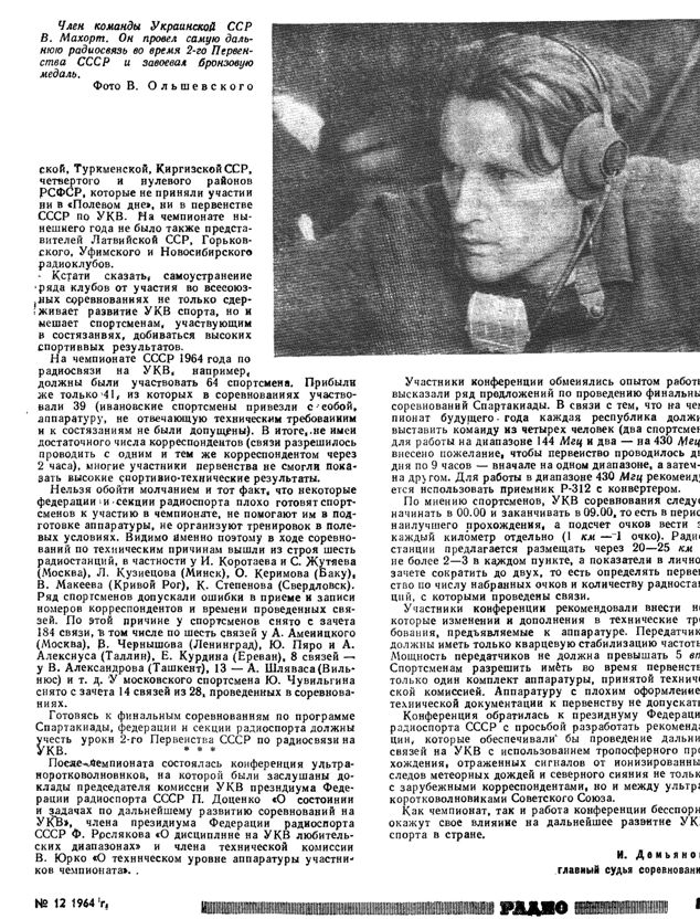 1964г. - Журнал Радио об УКВ аппаратуре на первенстве, стр.12