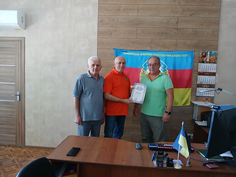 Я у віці 70 років. З друзями радіоаматорами. Скромно, бо йде війна. Подяка від директора Криворізької радіотехнічної школи.