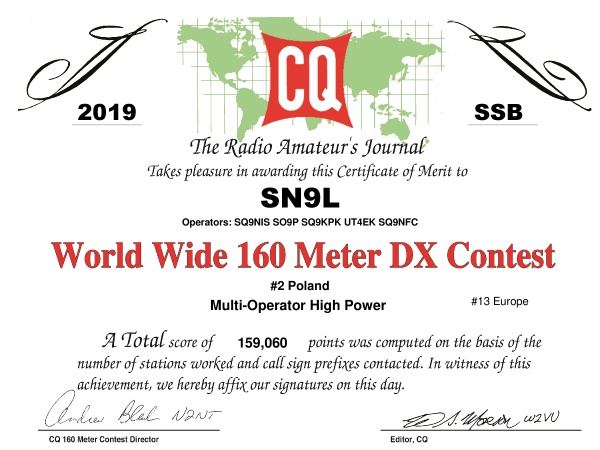 K9FA, SQ9NIS, UT4EK, SP9KR 2019.