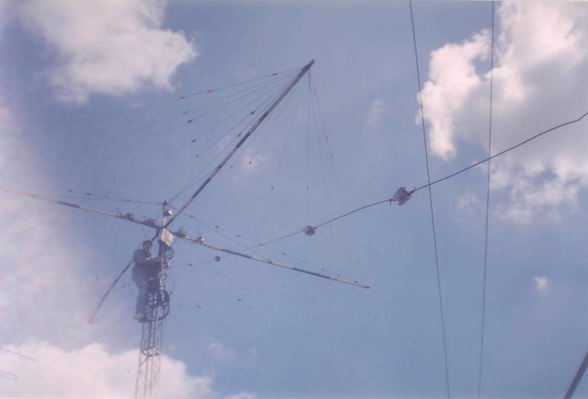 Зверху мачти.