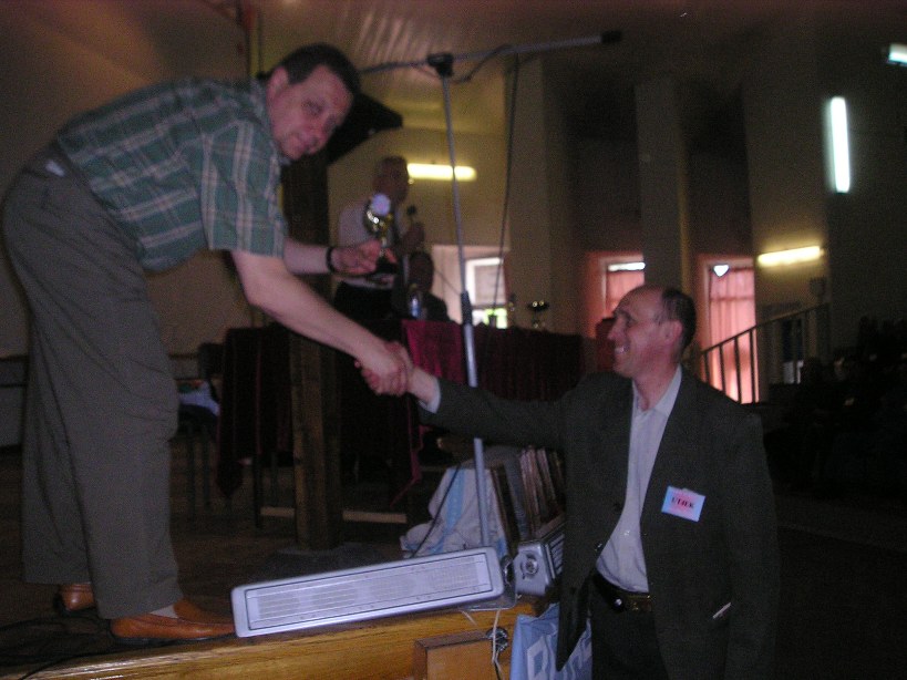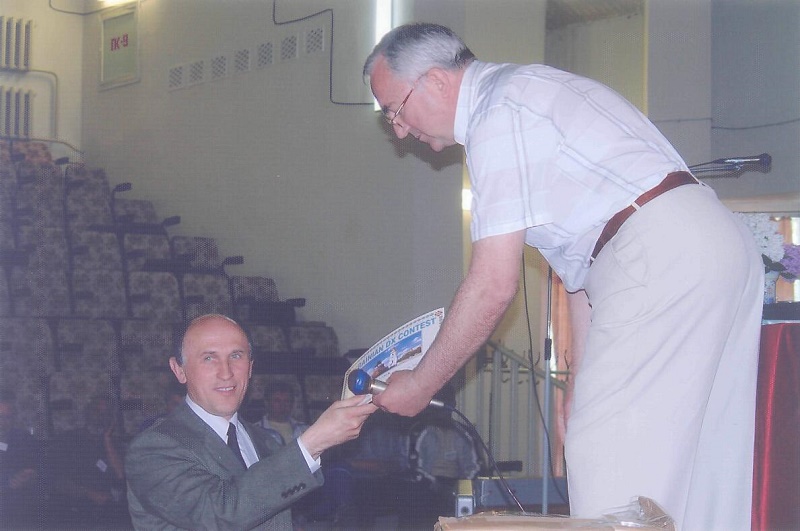 UT1IA вручає UT4EK статуетку "За активну роботу в UCC".