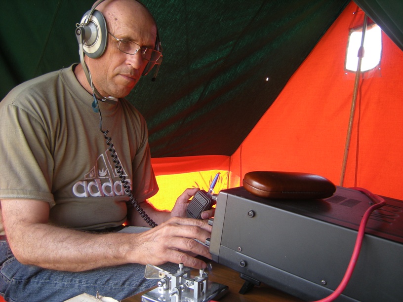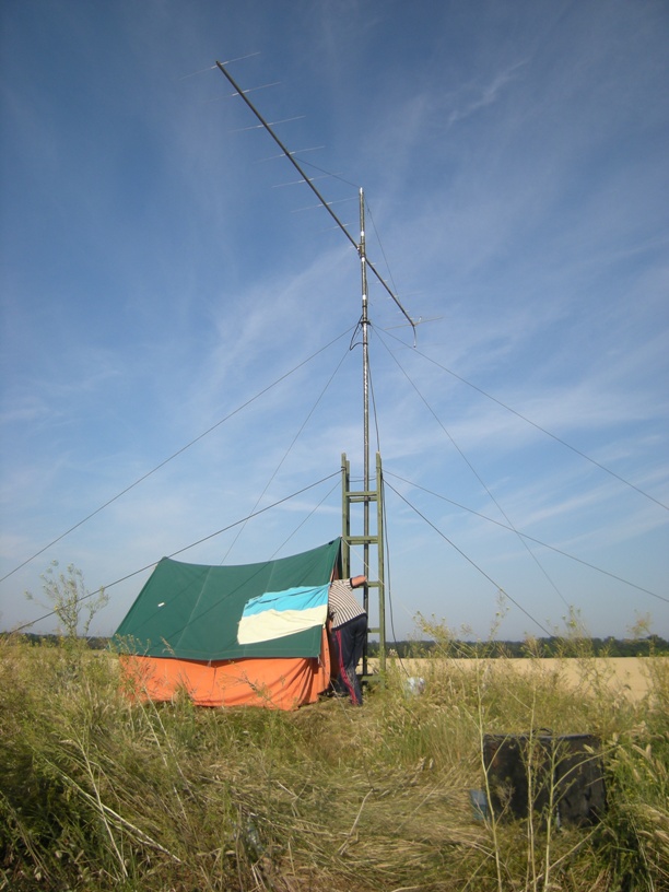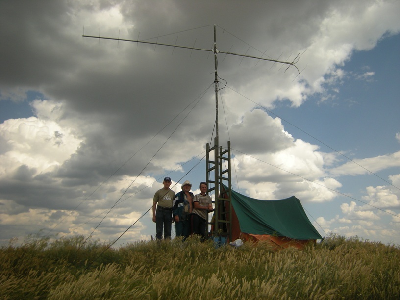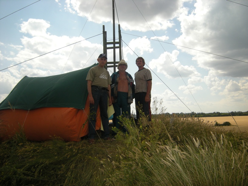Прибули на позицію. UT4EK за роботою. Антена та робоче місце. Члени команди UT4EK, UT2ED, UT2EL. Команда на робочій позиції.