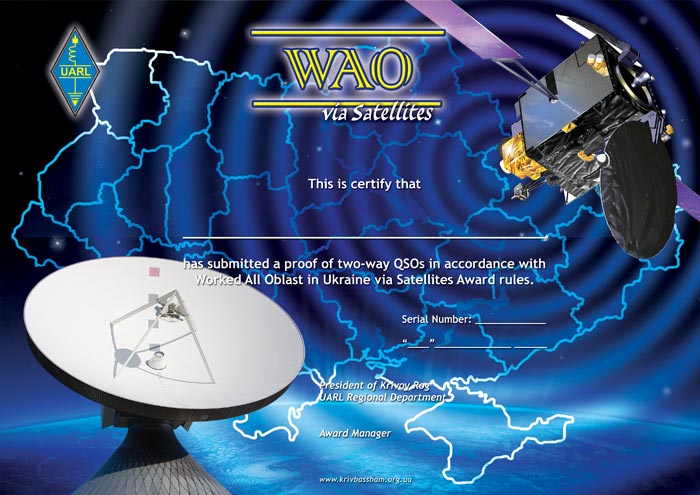 По радиосвязи только через спутники выдается диплом WAO via SATELLITES.