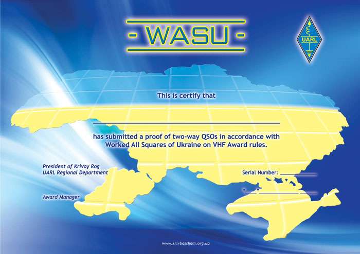 Диплом WASU присуждается за проведение двусторонних радиосвязей.