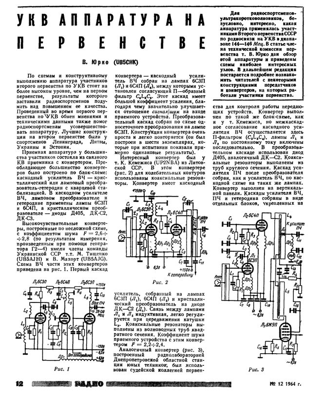 1964г. - Журнал Радио об УКВ аппаратуре на первенстве, стр.12
